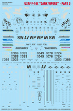 ![]() CD 72168: USAF F-16C "Dark Vipers" - Part 3 Ten marking options for USAF F-16C Vipers in the Have Glass V scheme. |