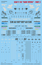 ![]() CD 72168: USAF F-16C "Dark Vipers" - Part 3 Ten marking options for USAF F-16C Vipers in the Have Glass V scheme. |